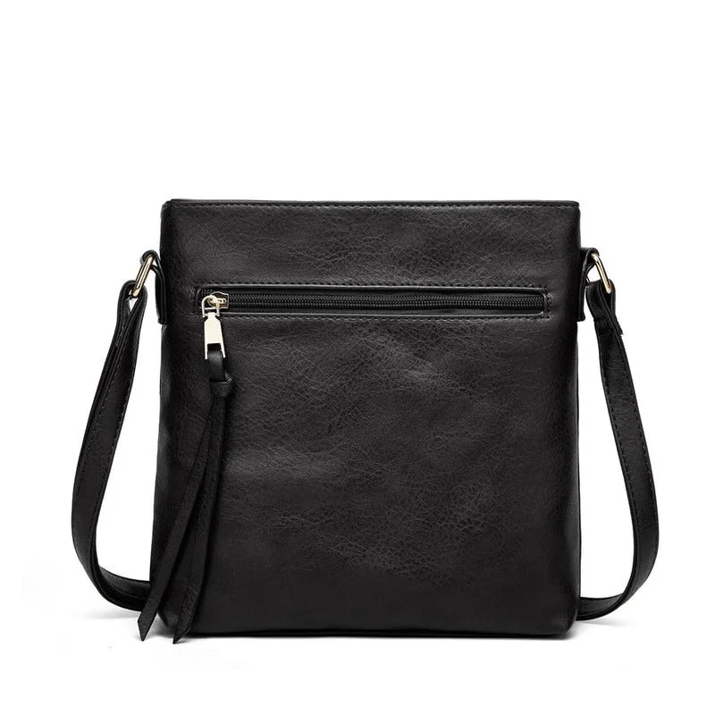 The interior features one main compartment for easy organization. On the outside, there's a front zippered pocket for quick-access items. The secure zip closure helps keep your belongings safe at all times.